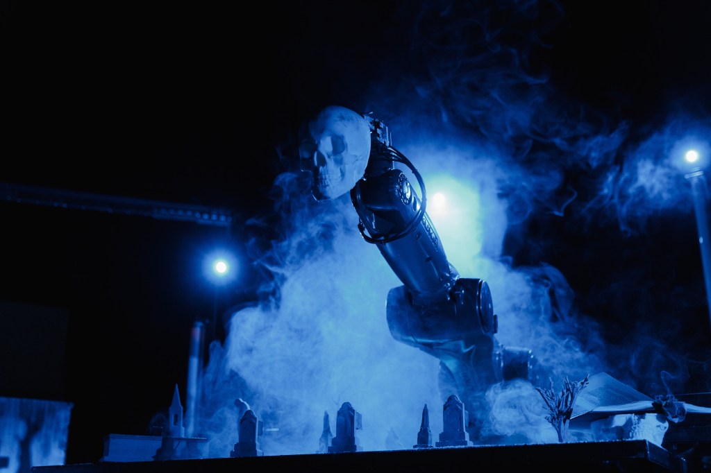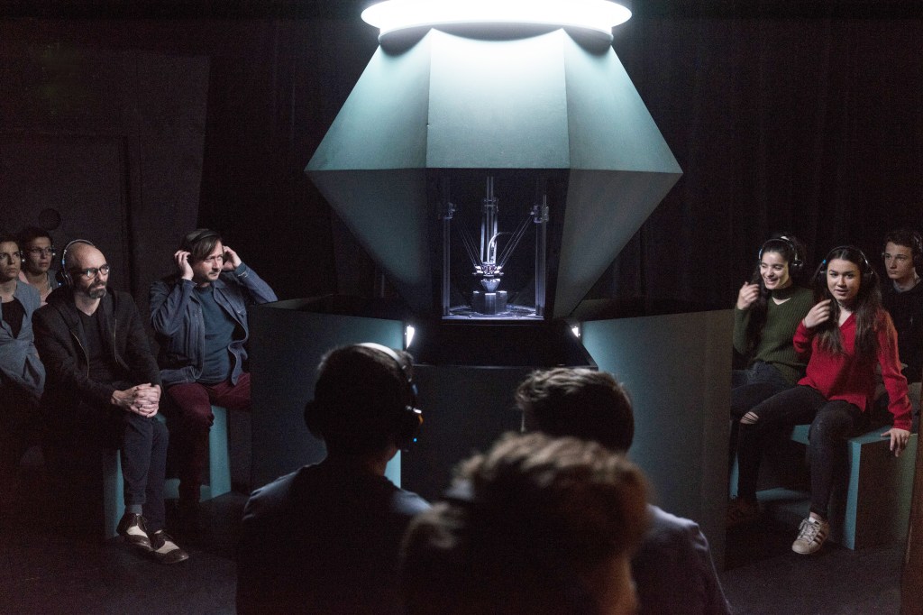 Bienvenue dans Artefact. Ce spectacle d’un genre nouveau nous invite, casque vissé sur la tête, dans un dispositif déambulatoire qui combine le théâtre optique, la technologie des imprimantes 3D et la robotique.
